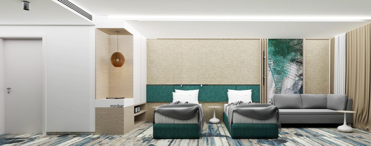 Bivanje: 1/2 sobe: kopalnica (prha, wc, sušilnik za lase), klima, telefon, sat TV, internetna povezava. V letu 2020 prenovljene sobe SUP balkon morska stran.