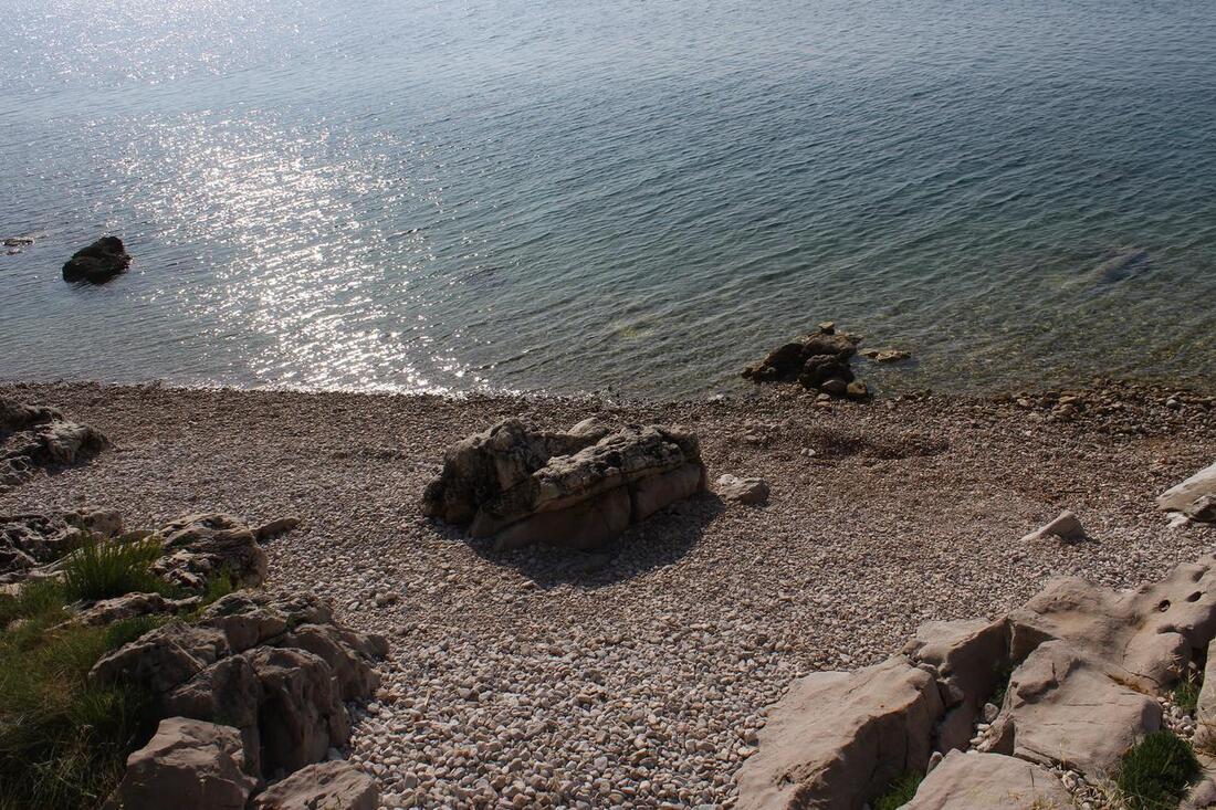 Plaža: 150 m; delno skalnata in delno prodnata z betoniranimi mesti za sončenje. V bližini je tudi plaža za pse.