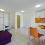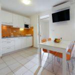 1/4 STUDIO: prib. 30 m2; 1 spalnica in ločena kuhinja z raztegljivim kavčem, kopalnica (prha/WC). Največ 2 odrasla in 2 otroka do 12 let.