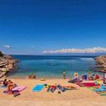 Plaža: skalnata z manjšim prodnatim zalivom; betonirane ploščadi za sončenje.