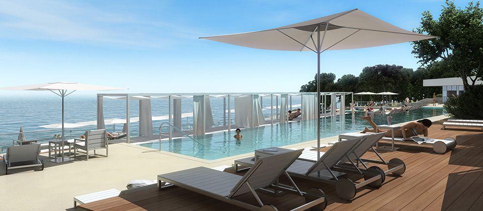 Bazeni in wellness: zunanji bazen in zunanji infinity bazen z morsko vodo, sončniki in ležalniki ob bazenu (glede na razpoložljivost), whirpool, notranji bazen z ogrevano morsko vodo, jacuzzi, savne (finska, bio, 2 parni, infrardeča), 4 masažne prhe, kotiček za sprostitev s sadjem, zunanja sprostitvena cona s pogledom na morje. Z doplačilom: beauty center (lepotilni programi in masaže), vitality zona.
