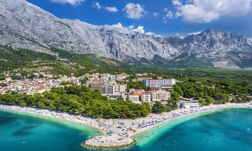 Lega: v Baški Vodi med borovci, ob sprehajalni poti, 50m od plaže, cca. 200m do centra mesta.
